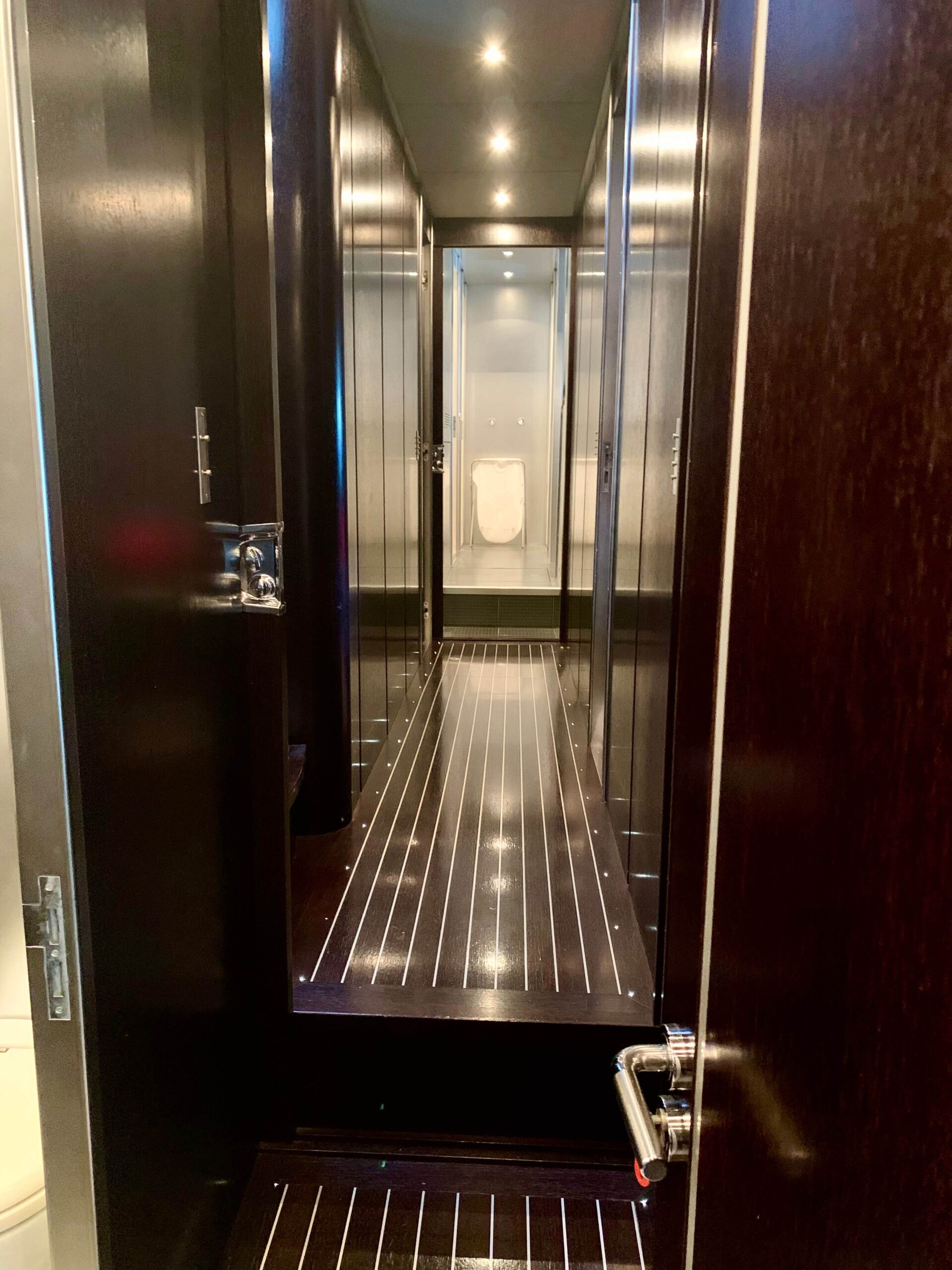 Gli ospiti vengono accomodati in tre cabine che offrono il massimo livello di privacy; moderne ed eleganti grazie al contrasto tra la moquette color crema e i mobili in Okoume scuro.