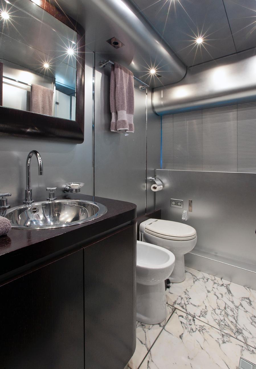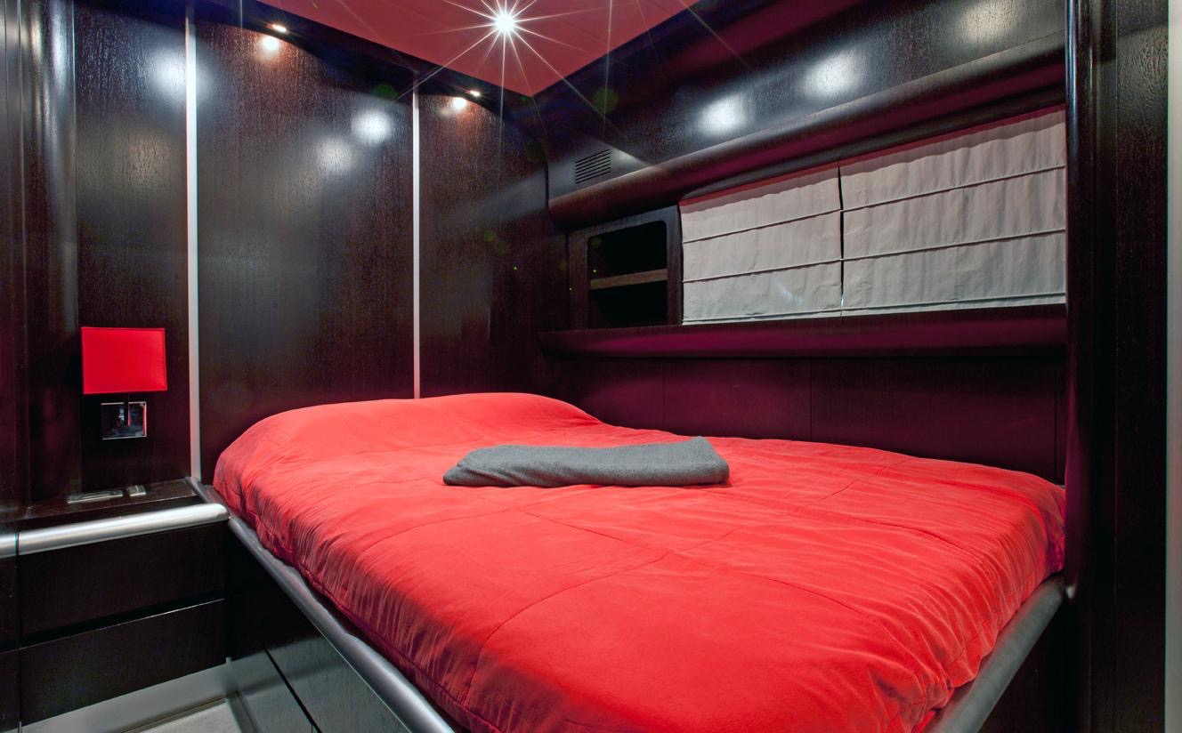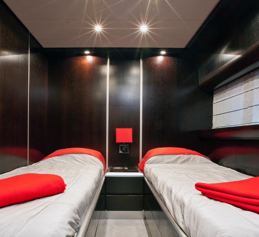 La zona notte include anche una lussuosa cabina VIP matrimoniale completa di bagno privato, una cabina doppia con letti singoli, e un day head.