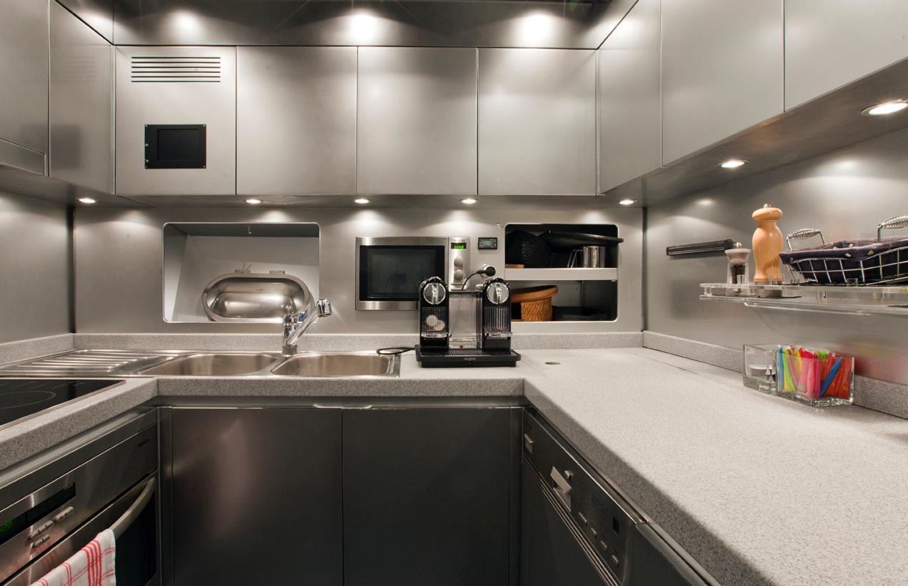 L’area dedicata all’equipaggio è composta da due cabine e un bagno, consentendo ad un equipaggio di tre persone di operare con discrezione ed efficienza.